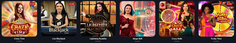 - Tarjoajat: Evolution, Pragmatic Play Live